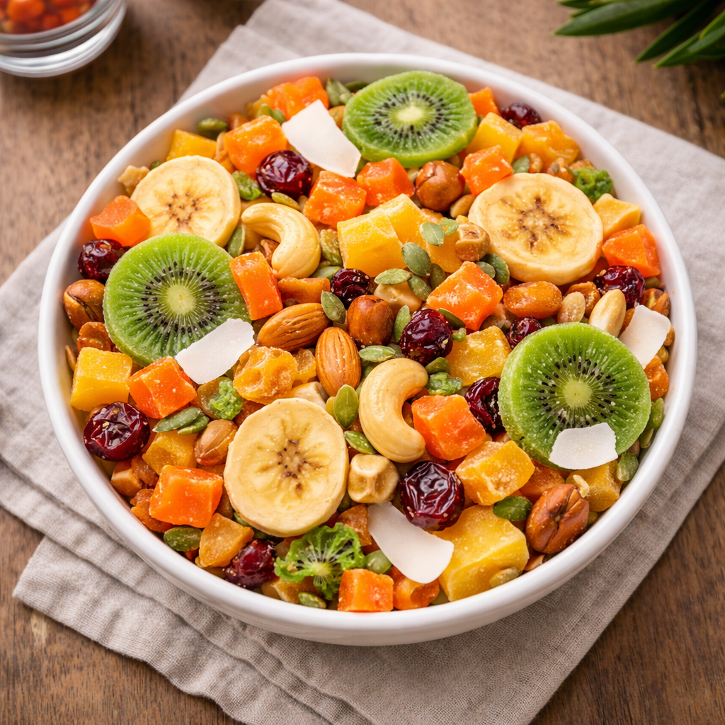 Una explosión de sabor natural. Nuestro Mix Tropical combina frutas deshidratadas seleccionadas para brindarte dulzura, frescura y energia en cada bocado.